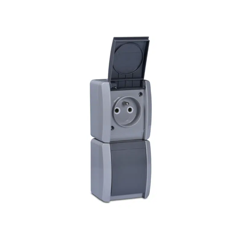 Priză dublă pcom vertical instalare în aer liber gri IP54 Nora Multusan