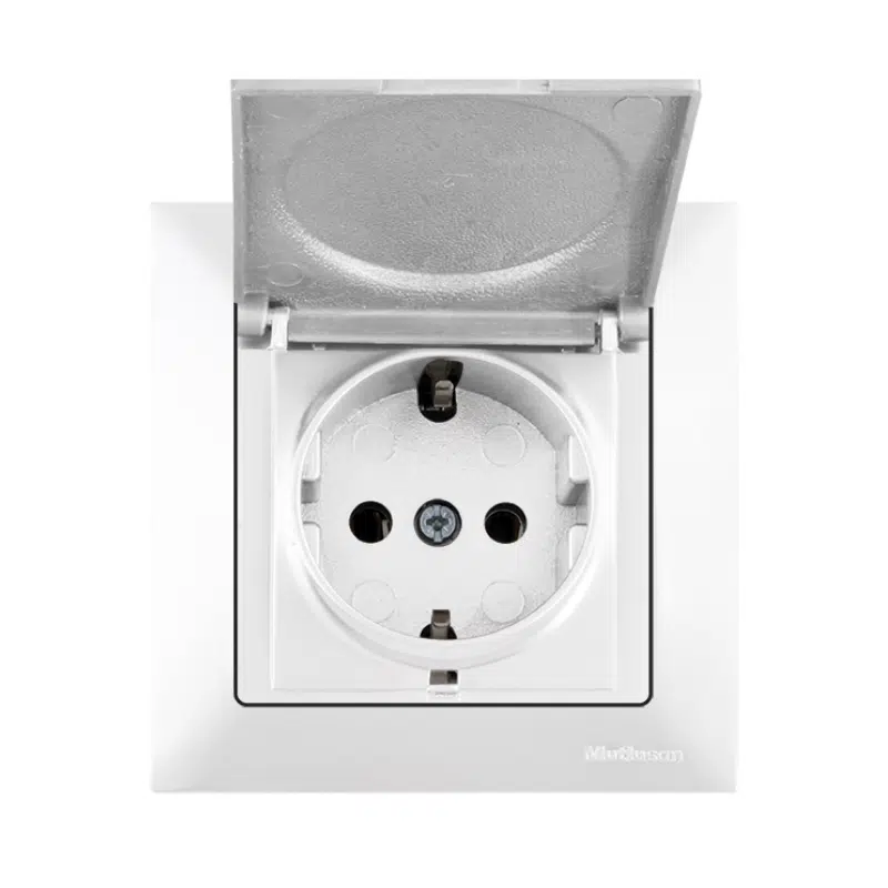 Priză shuko simplă cu capac 16A alb Candela Mutlusan