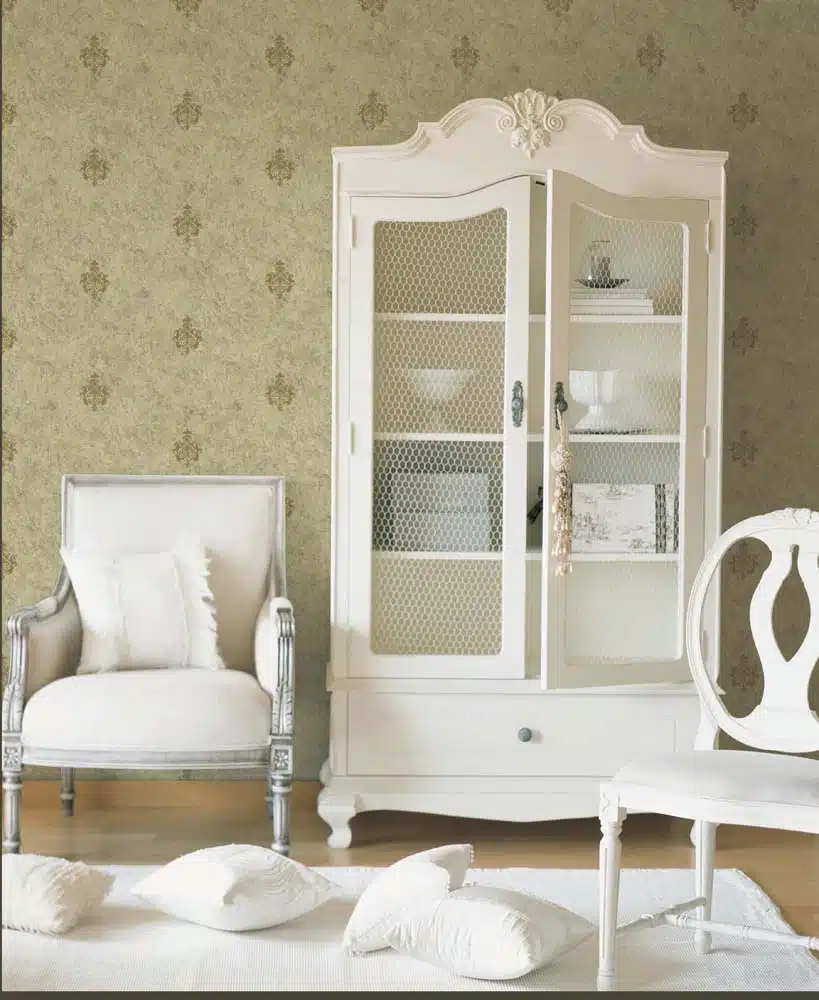 Tapet figurativ cu efect mătăsos și ornamente. Extrem de rapid și ușor de instalat.