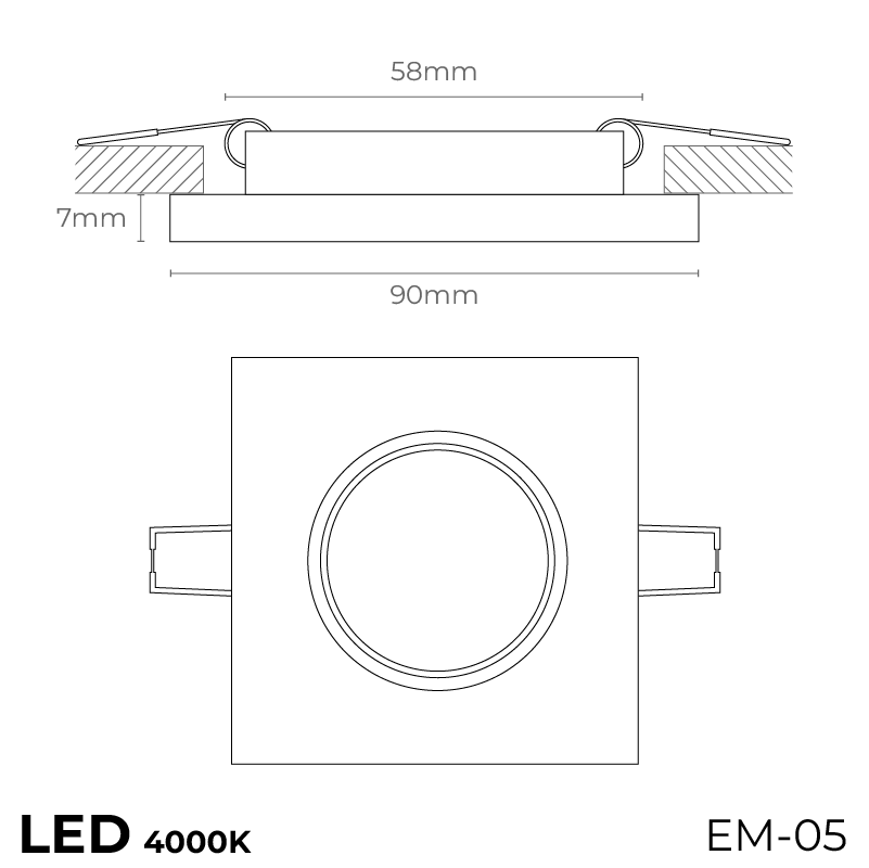 Lună pătrată din sticlă de aluminiu - 4000K
