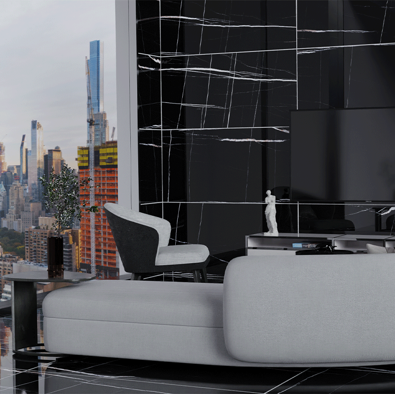 Plăci de porțelan "Agatha" negru lustruit 60x120cm