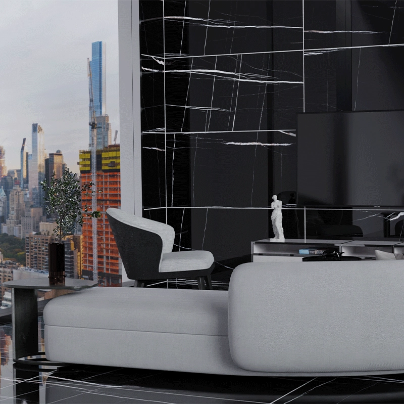 Plăci de porțelan "Diamond" negru lustruit 60x120cm
