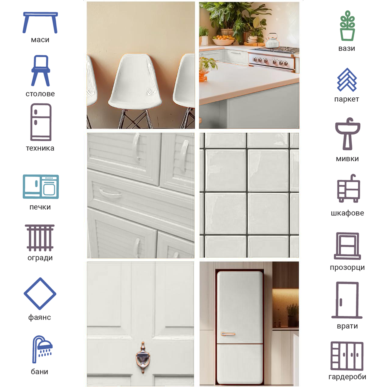 - Suprafețe din lemn: mobilier, uși, bucătării, băi, panouri laminate și solide.