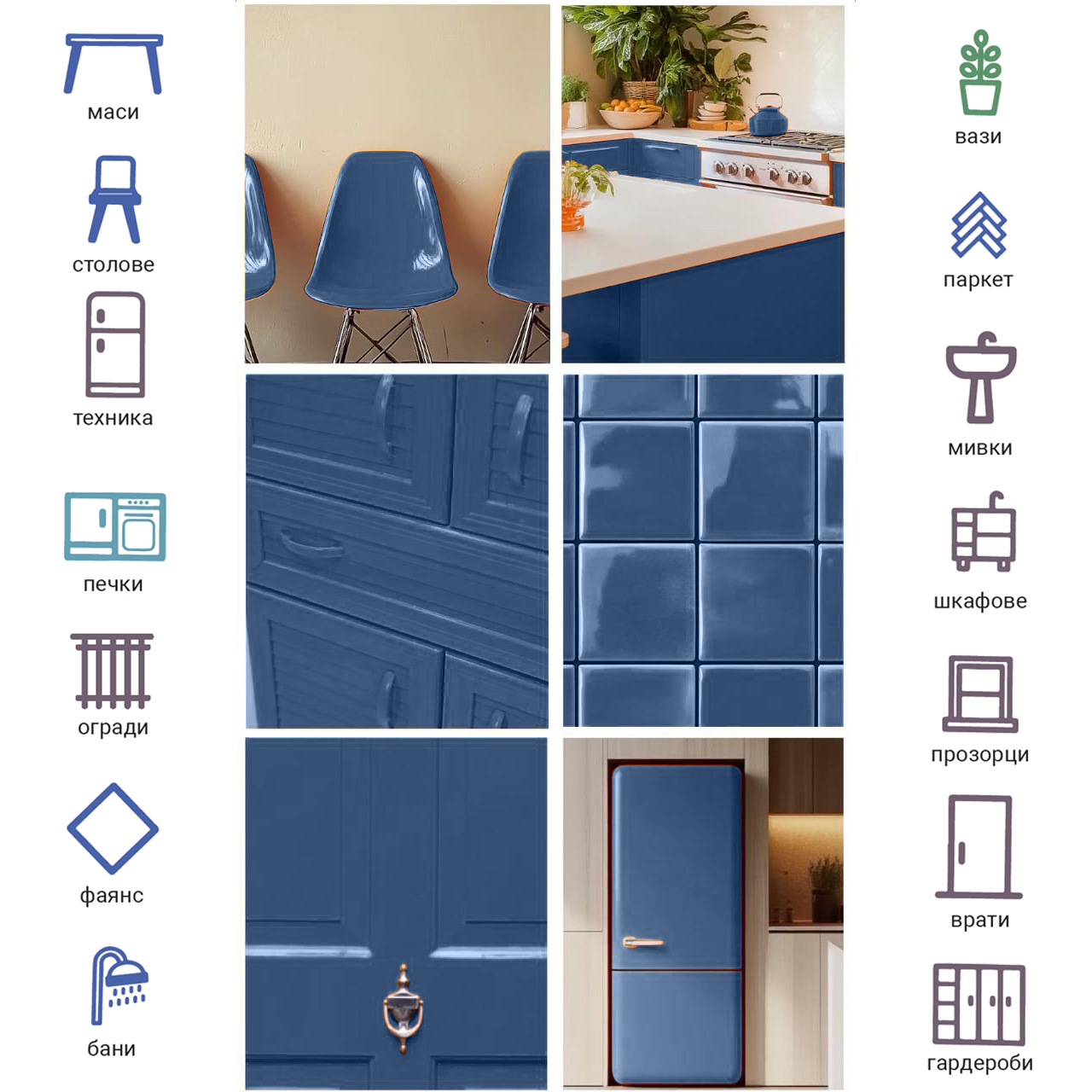 - Suprafețe dure: ceramică, granit, marmură, piatră, sticlă, obiecte decorative.