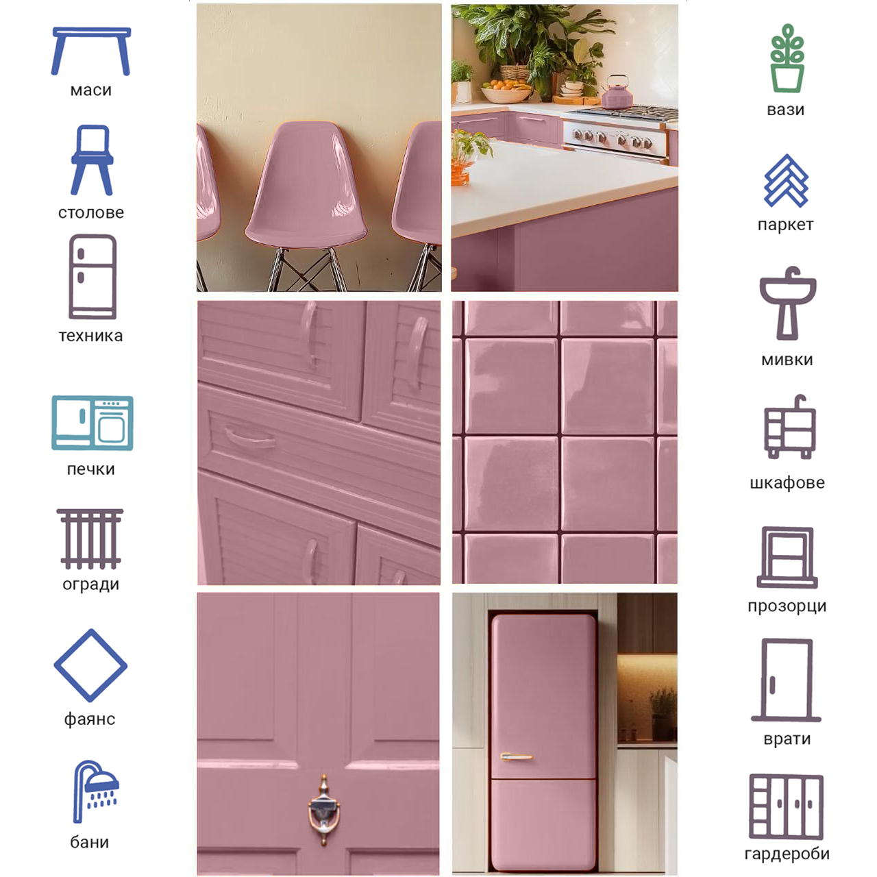 - Suprafețe dure: ceramică, granit, marmură, piatră, sticlă, obiecte decorative.