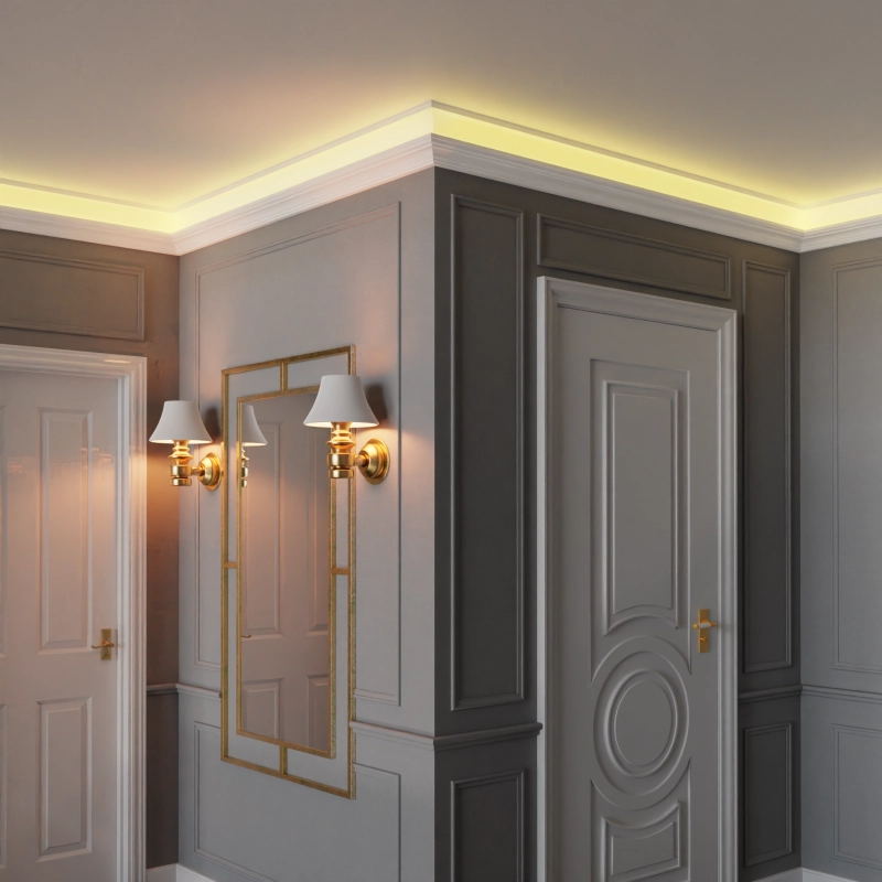 Această plintă LED este o soluție elegantă și modernă pentru iluminatul ascuns în interior. Designul său are linii ondulate elegante care combină funcționalitatea și estetica. Se vinde în pachete de 2 bucăți.