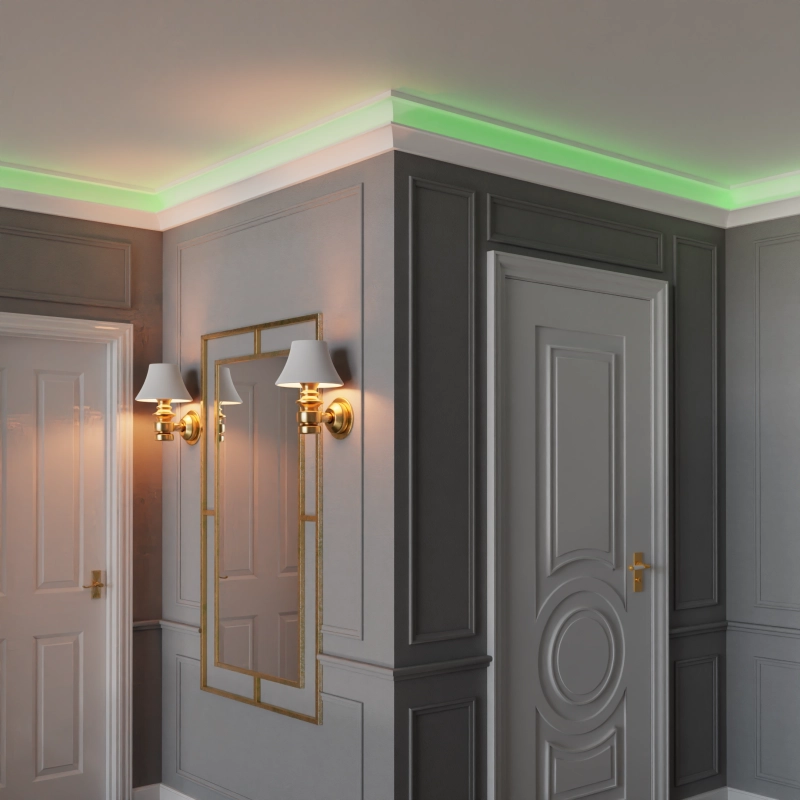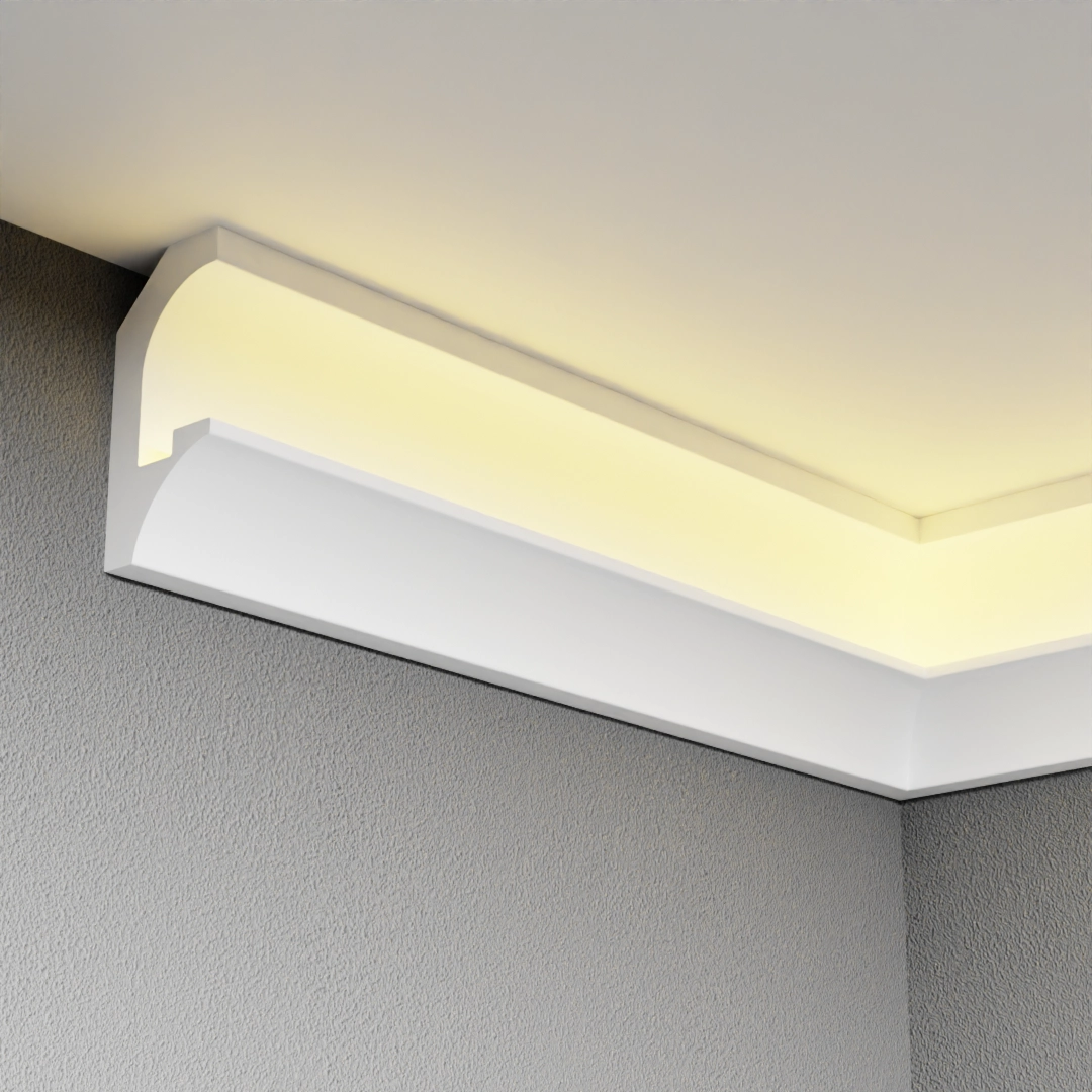 Această plintă LED este o soluție elegantă și modernă pentru iluminatul ascuns în interior. Designul său este curat, cu o parte ondulată. Se vinde în pachete de 2 bucăți.