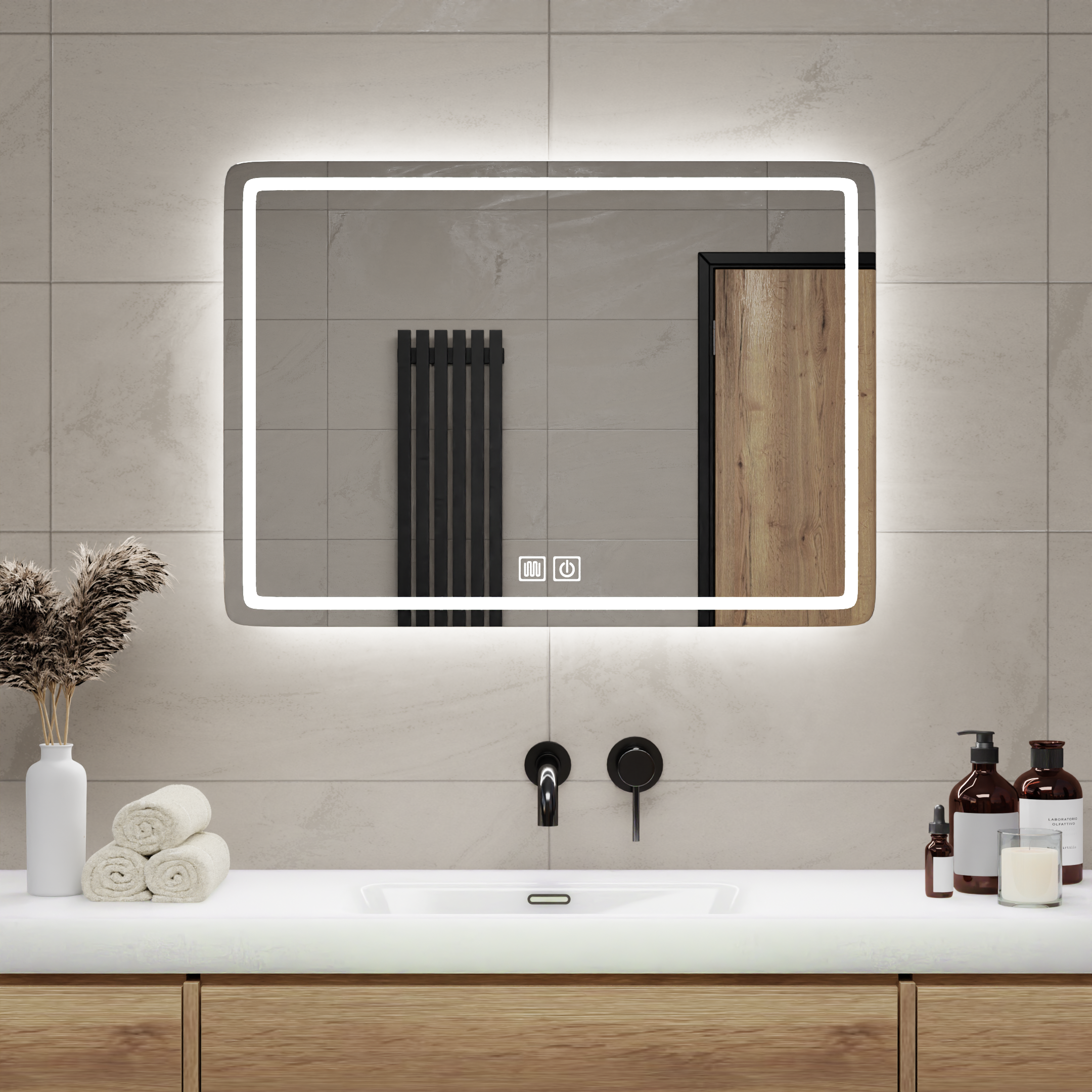 Oglindă de baie cu lumină LED frontală integrată 50x70cm